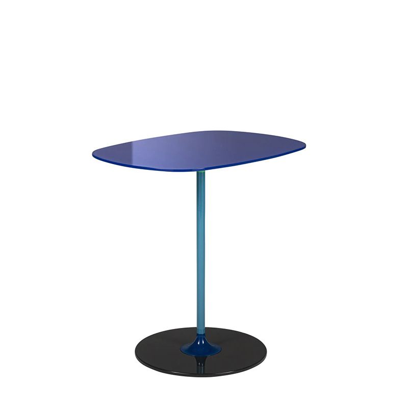 ファッション性の高いボルドー、クラシックなシーブルー、エレガントなロンドンスモークグレーなど、艷やかで光沢のあるガラステーブルとフレーム、ベースは同じ色調の中で対象的な組み合わせになっています。