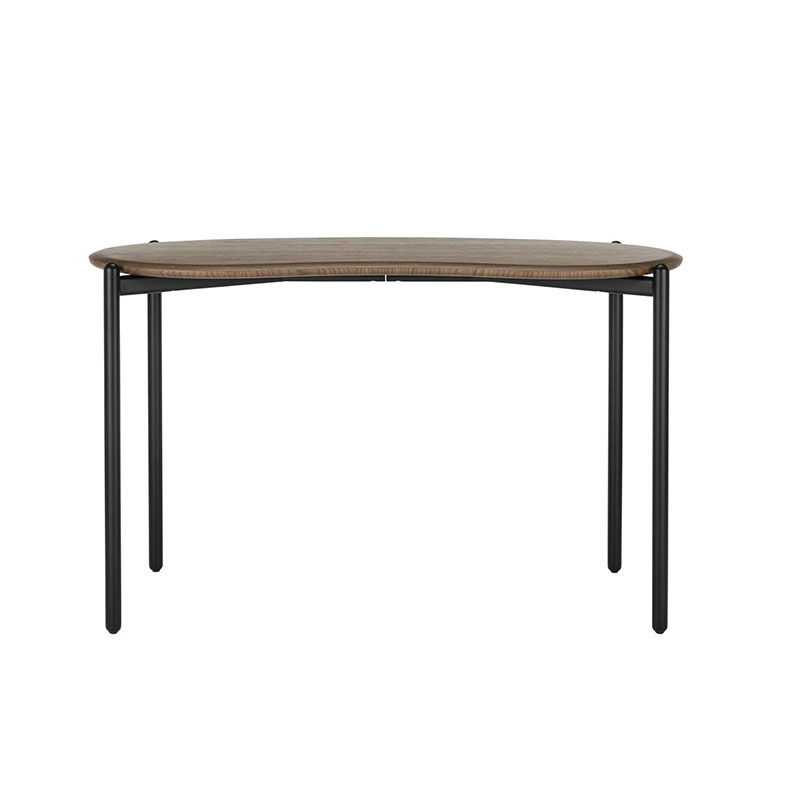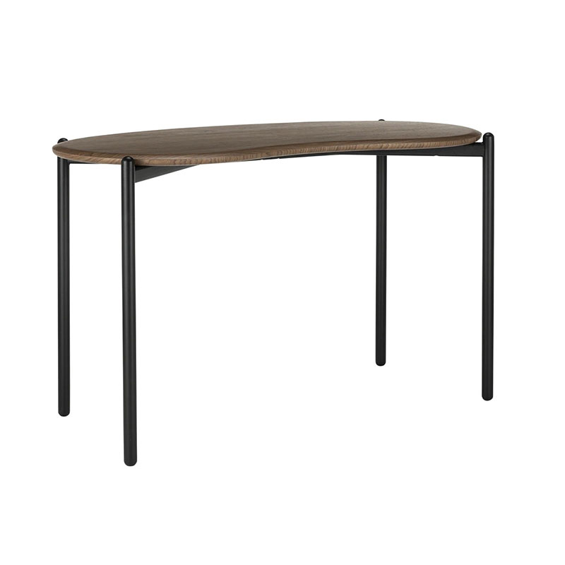 木製でも薄さを実現するため、トップはフレーム補強されたウォルナット製、脚はルナムシリーズと共通のブラック塗装の金属製レッグです。