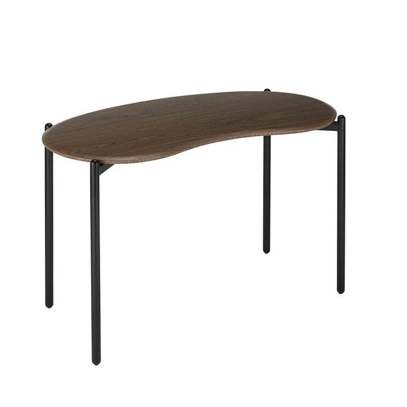 全体のフォルムはシンプルで軽やか、ユニークな豆型のデスクです。
