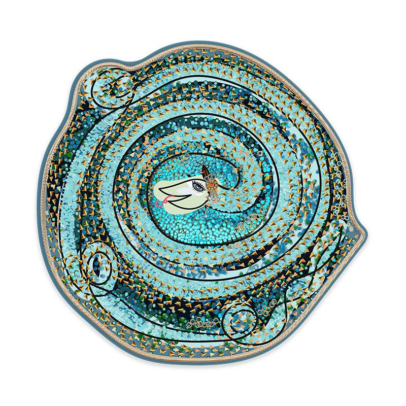 神話によると、魅力的な皇帝がカウロンのドラゴンによって蛇に変えられてしまったという。この2次元のモザイク画が、鮮やかな色彩と黄金の3D要素で蘇りました。