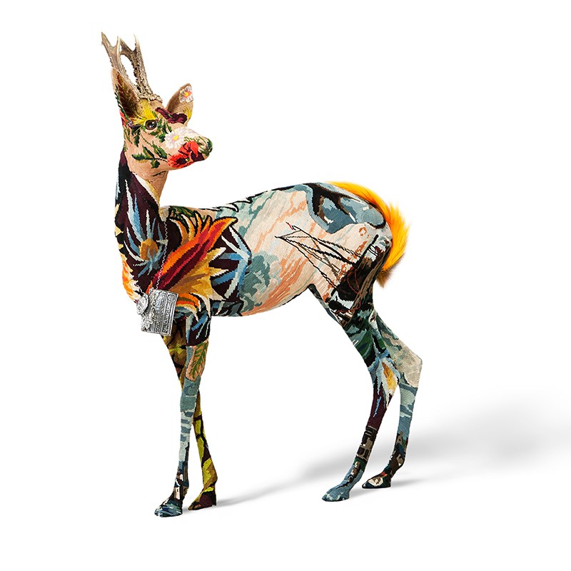 『FREDERIQUE MORREL(フレデリック・モレル)』は、亡くなった祖母のニードルワーク(針仕事)への想いから誕生しました。すべてニードルポイント刺繍(※注)のハンドメ イドで手掛けており、刺繍の色や柄は、世界中探しても同じものは他にない全てが1点ものの作品です。 フレデリック・モレルの作品それぞれには、深い意味とメッセージが込められており、例えば、刺繍で扉を描けば「人生の半分を通り過ぎた 」という意味が込められていたり、別の作品では愛と求愛がテーマだったり。避けては通れない人類と自然の関わりや、人間や動物にとっての幸福について追及 し、作品を通して「伝えたいメッセージを表現する」という、あたらしい創造に挑戦し続けました。