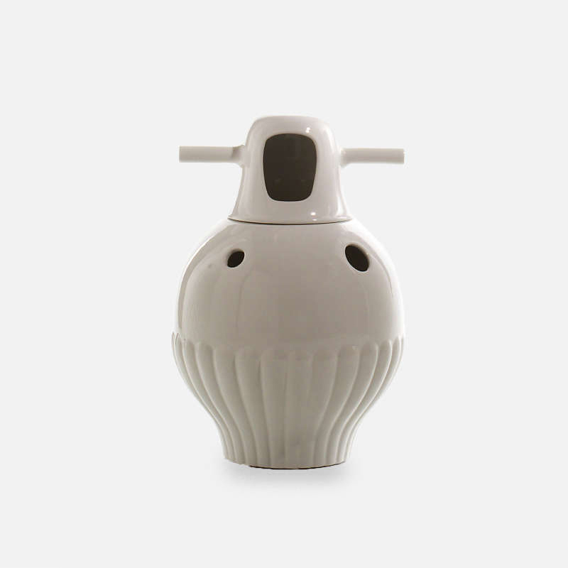 様々なプロダクトに引用される象徴的なモチーフの元祖と言っても良いリヤドロや、今年の初めに発表されたバカラのコレクション、そして今年のサローネで発表される椅子のシリーズにも使われる、最もハイメらしいファンタジックなモチーフ。分割式のヘッド部とボディ部に開いた丸い穴に花を生けたり、ヘッド部分を外して生けたり、持ち主のセンスの見せ所です。もちろん、花を生けずとも充分オブジェとしての魅力もたっぷり。