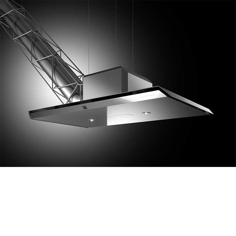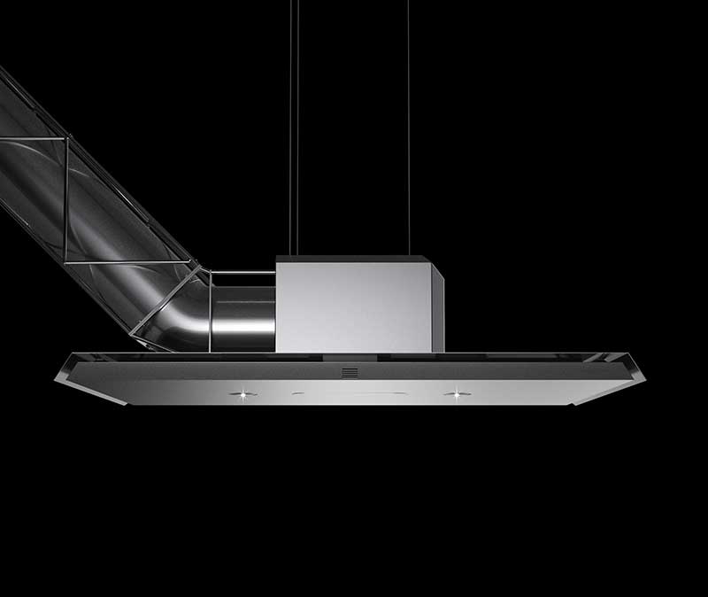 トラスフレームを備えた存在感溢れる薄型レンジフード。