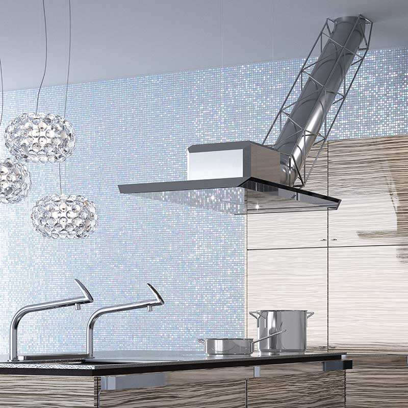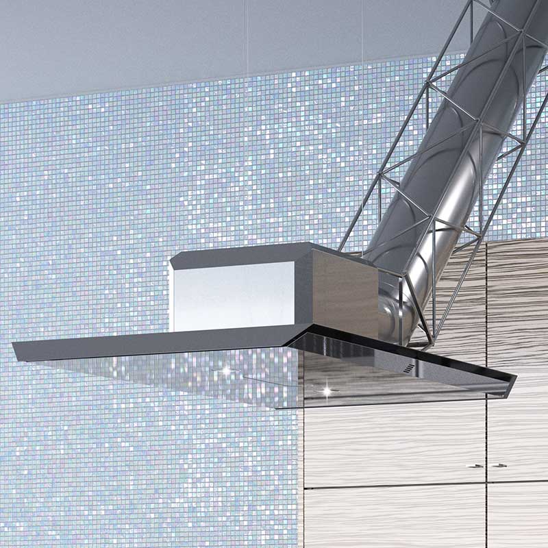 フレームパーツの組み合わせで天井や壁からと、あらゆる環境下で設置を可能にした万能レンジフードです。