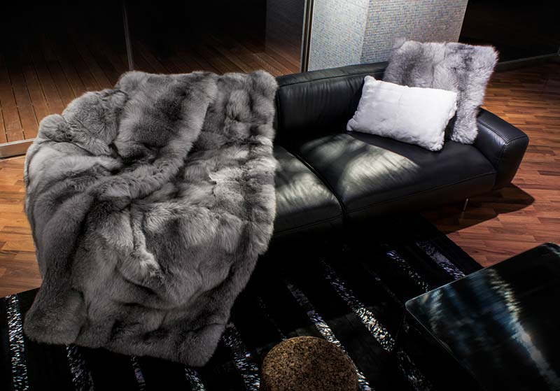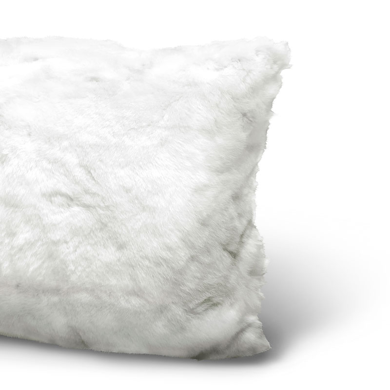 ホワイトラビットのファーを使用したクッション