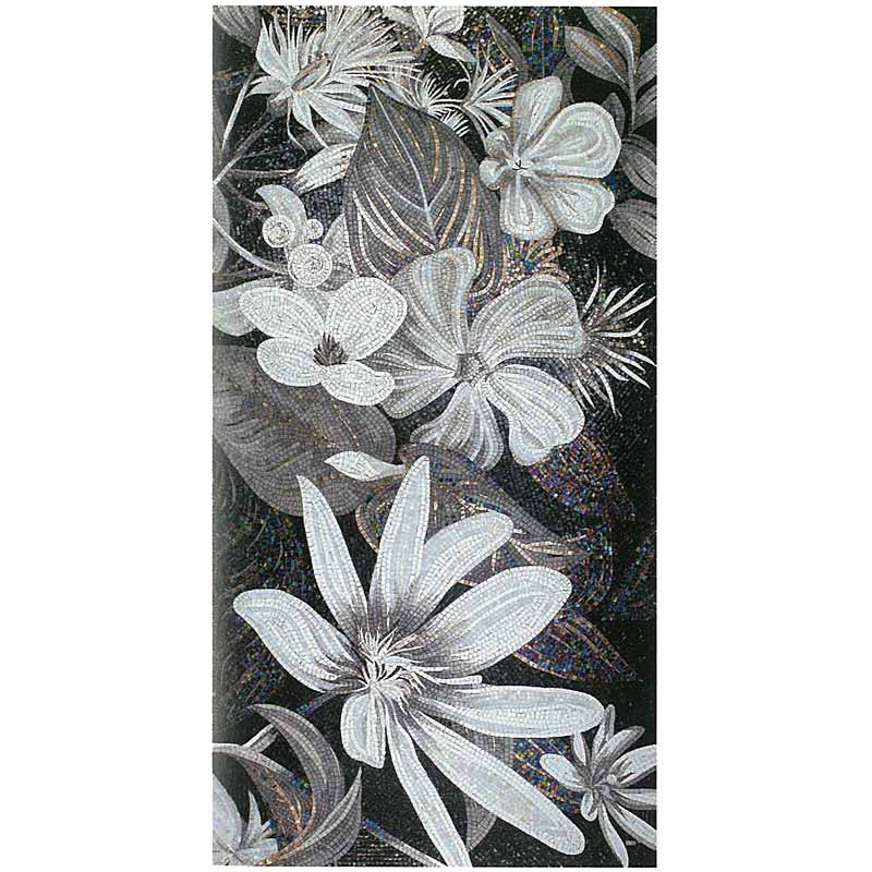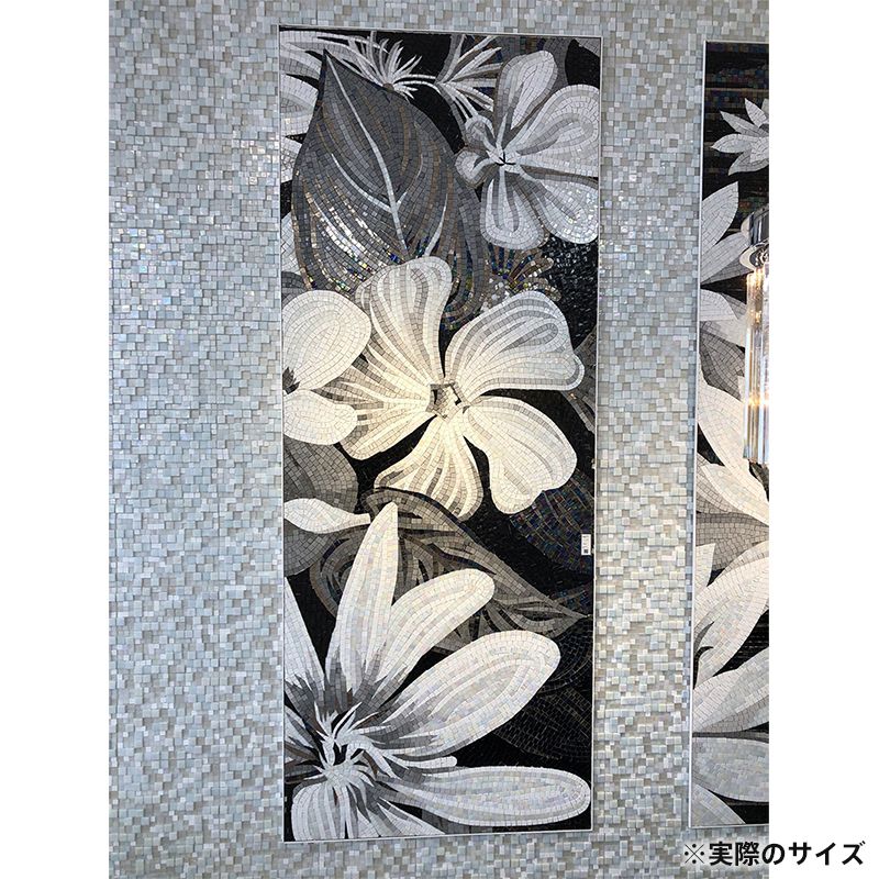 イタリア、ラヴェンナのモザイク職人が、すべてモザイクのハンドワークによって描いた美しい花々です。べネツィアンガラスの鮮やかな色彩によって表現された花たちは、透明感のある煌びやかさをもっています。熟練した職人が絵柄に合わせ、ベネツィアンモザイクを1枚1枚手割りして繊細に描いたモザイクアートです。