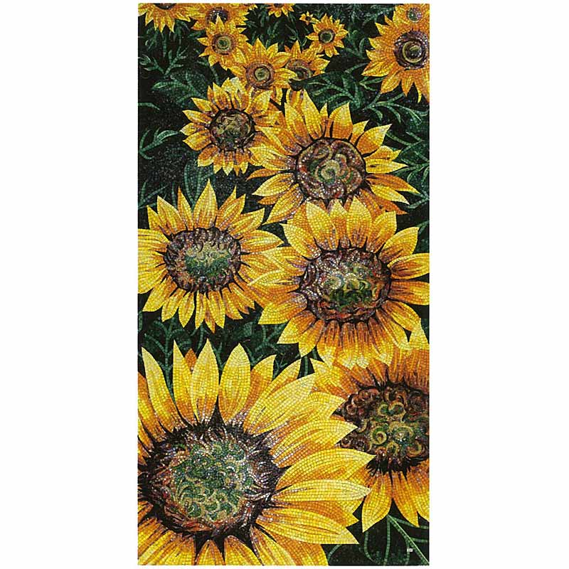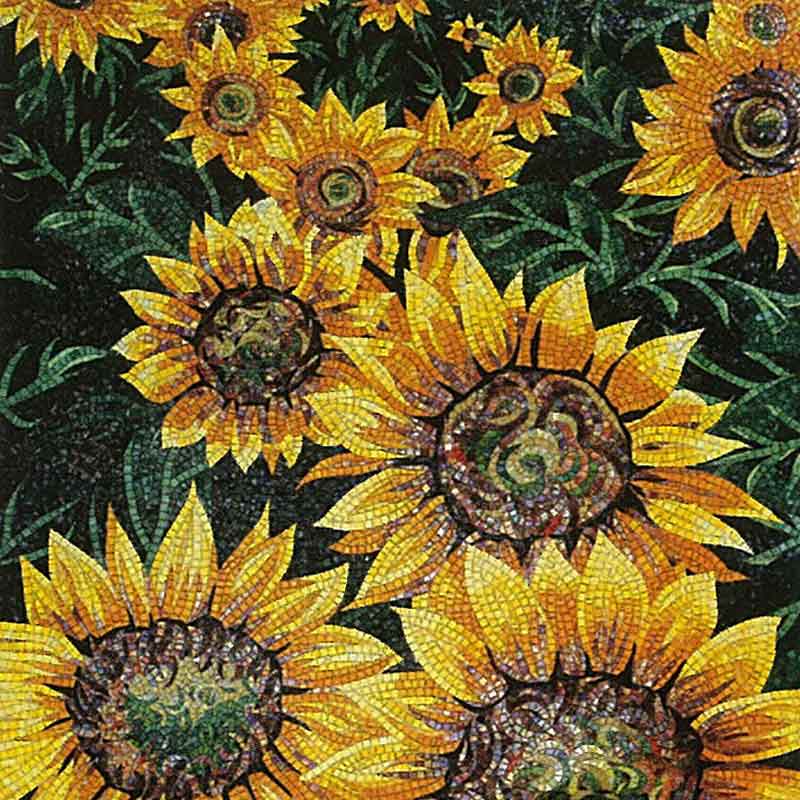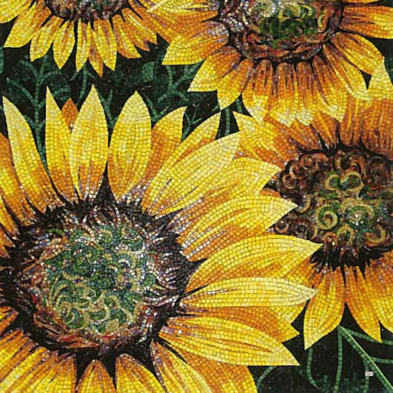 イタリア、ラヴェンナのモザイク職人が、すべてモザイクのハンドワークによって描いた美しい花々です。べネツィアンガラスの鮮やかな色彩によって表現された花たちは、透明感のある煌びやかさをもっています。熟練した職人が絵柄に合わせ、ベネツィアンモザイクを1枚1枚手割りして繊細に描いたモザイクアートです。