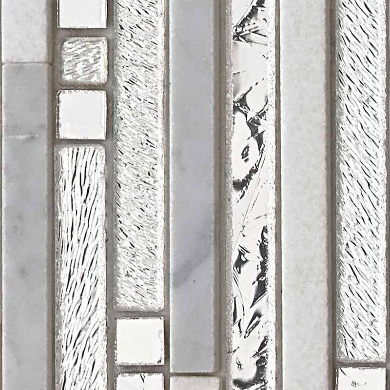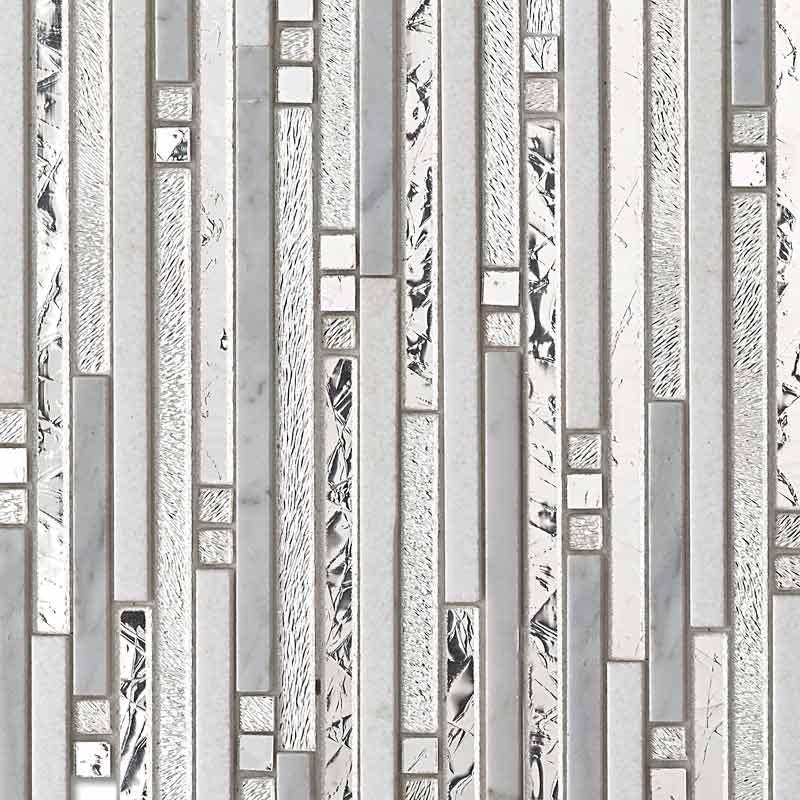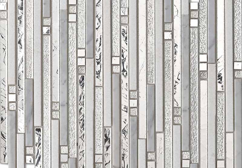 帯状の細いシートと細かいチップをミックスし、まるで大地が織りなす自然そのものを生地に見立てたようなデザイン。
