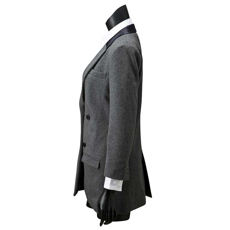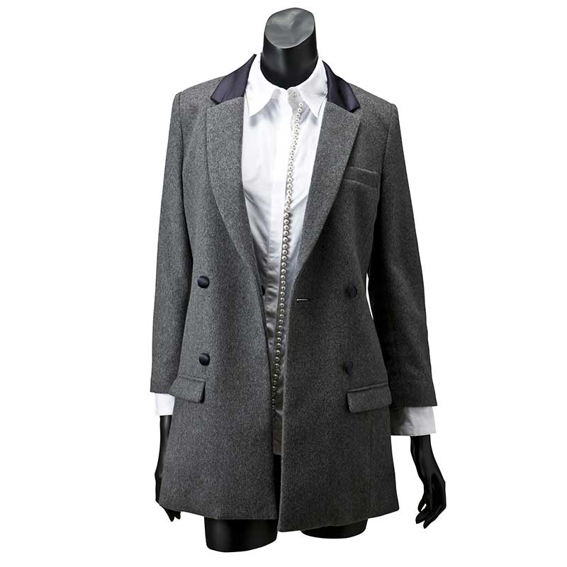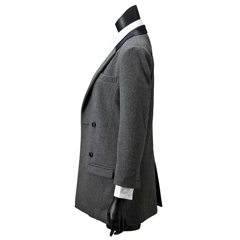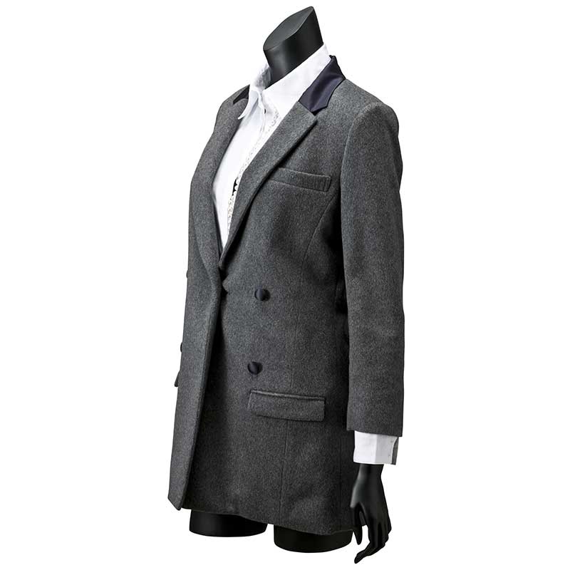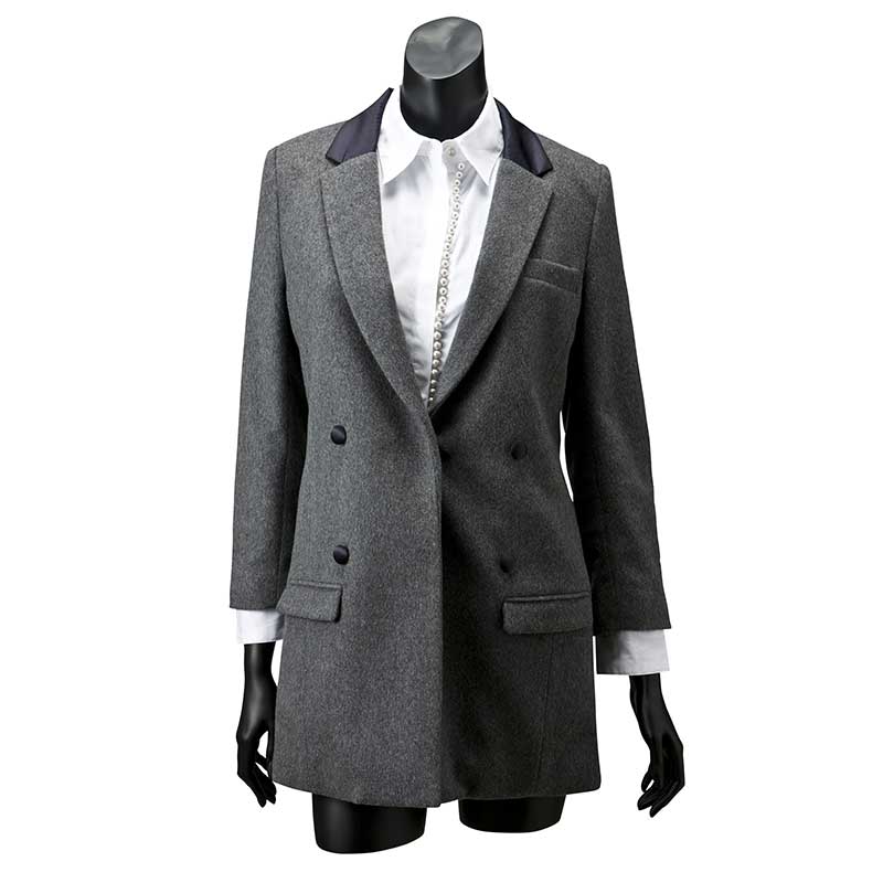 マニッシュで上品な女性をイメージして、メンズのクラシックなフォーマルコートをあえてレディースウェアに採用しました。
