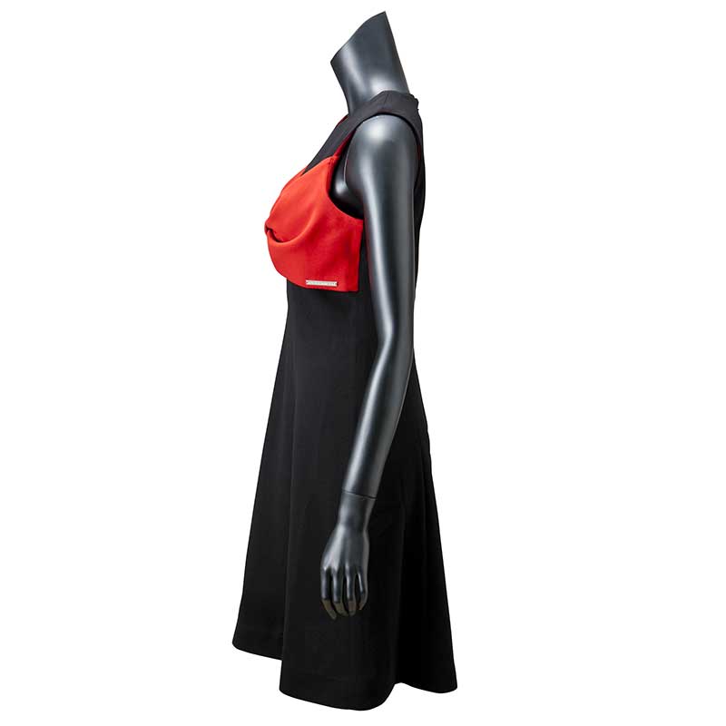 シャリ感のあるジョーゼット織りの生地を選び、歩いた時に綺麗なドレープが生まれるようにデザインされています。