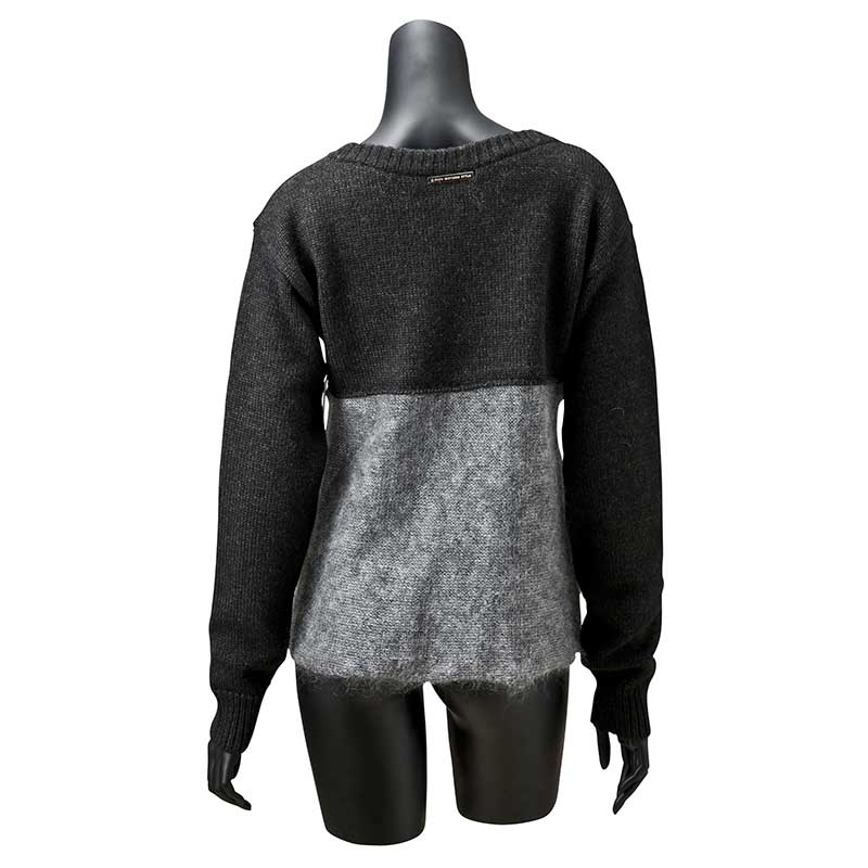 上半分はベイビーアルパカを使い、エアリーでふわふわした軽やかなイメージに。