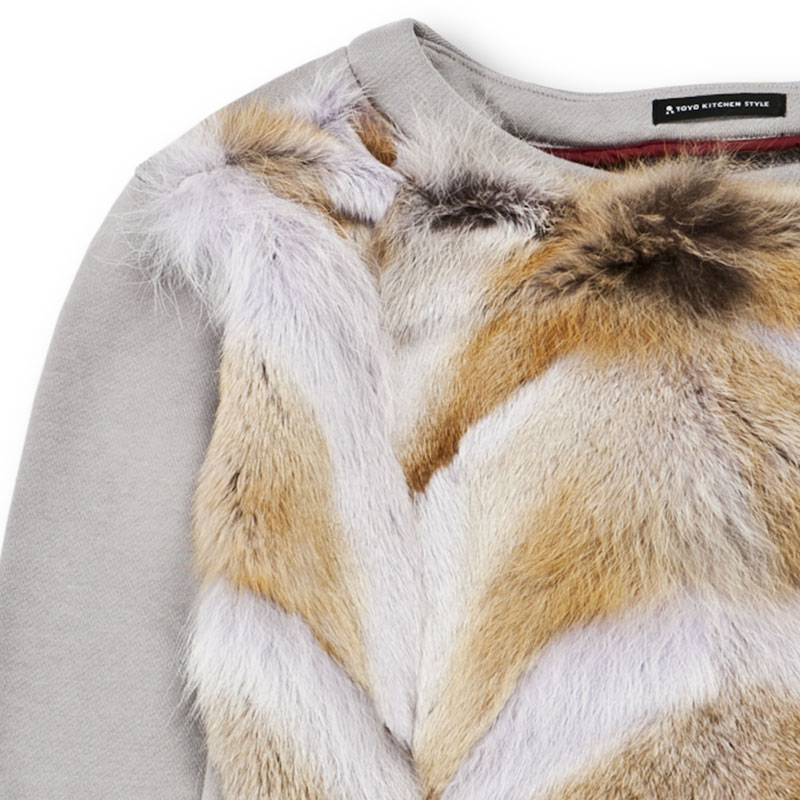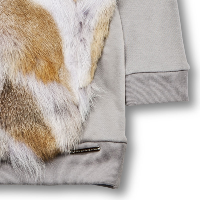 ファーをコットンスウェットと組み合わせて