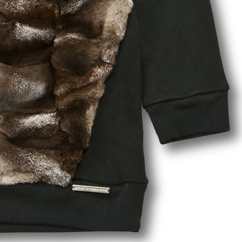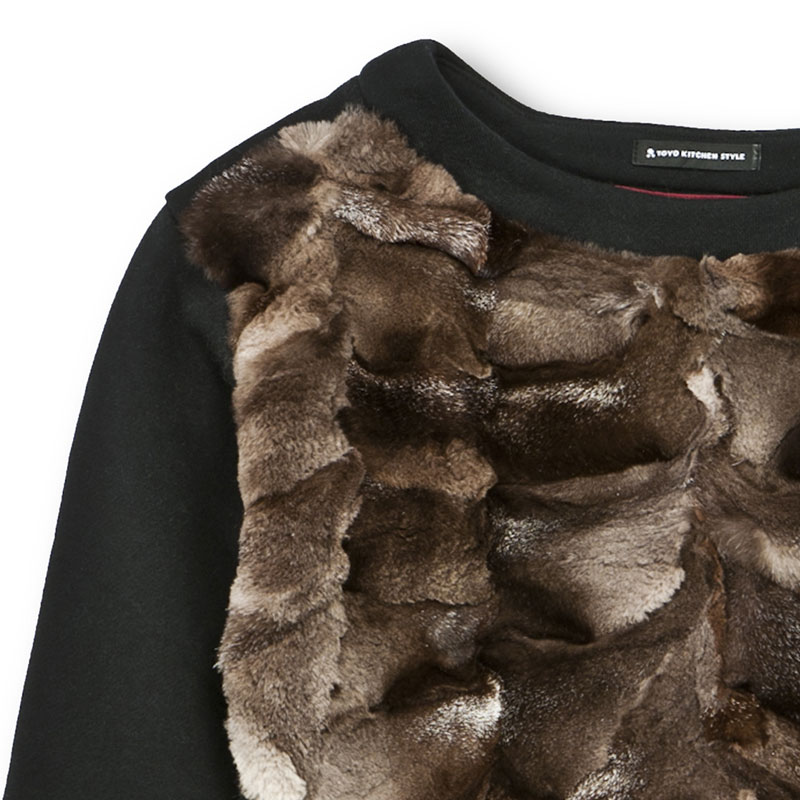 ファーをコットンスウェットと組み合わせて