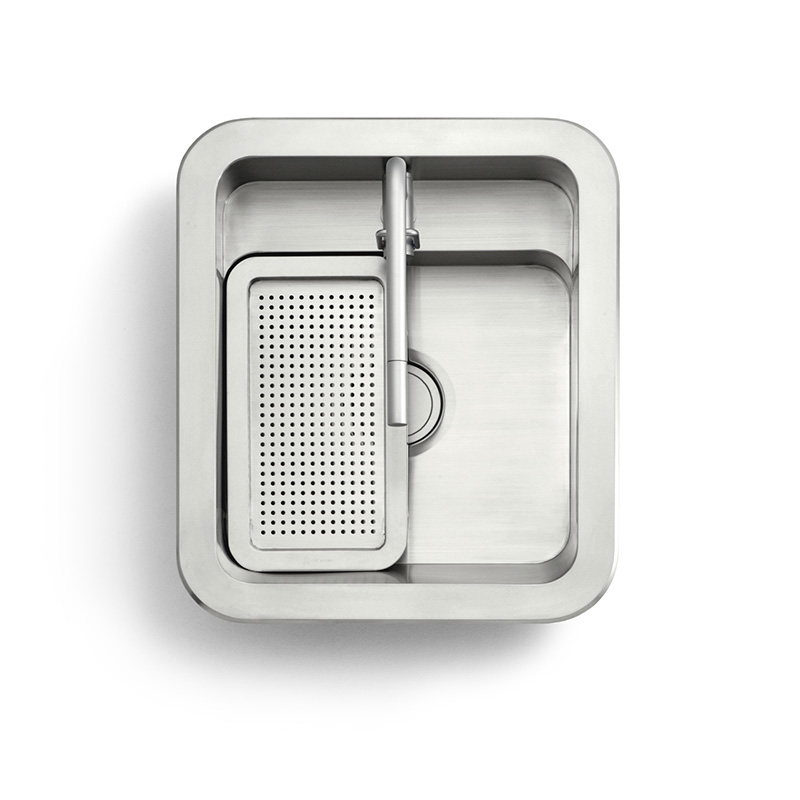 PUTTONのシンクは底面もフラットな面として使用できます。また、各シンクには水きり穴のついたスライドプレートとまな板が標準装備されています。