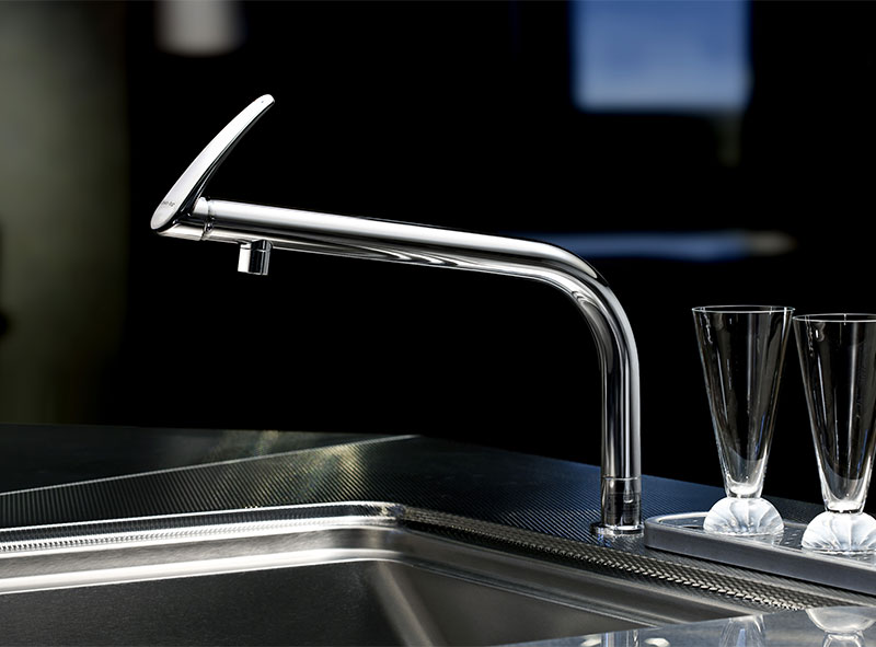 キッチンの輝くアクセントとして、よりスタイリッシュな印象を与える「USAGI」(ウサギ)。フォルムもきわめてシンプルで、まさに「水栓器具の逸品」といえます。蛇口部の大型操作レバーにより手元で扱えるため、手のひらだけでなく、肘や腕でも操作が可能です。 手が汚れていても水栓を汚すこと無く簡単でしかも清潔です。