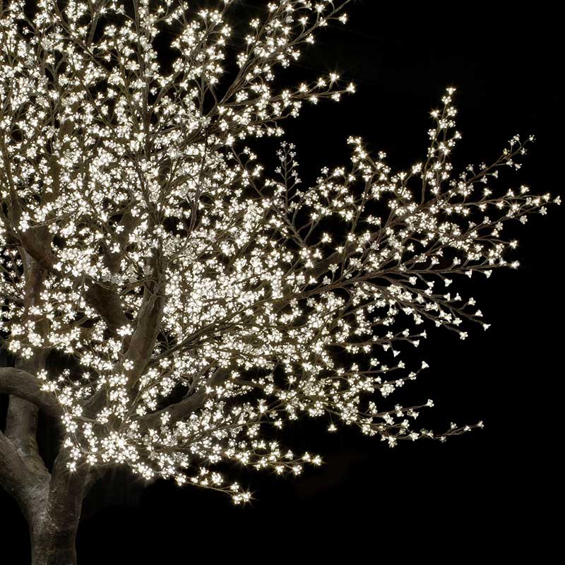 桜をモチーフにした花の1つひとつにLEDが組み込まれており、たくさんの光の粒が幻想的な光を放ちます。