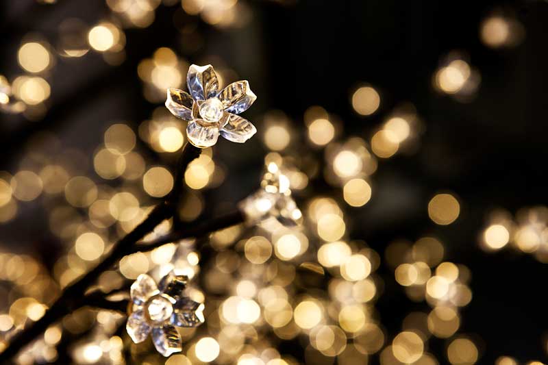 桜をモチーフにした花の1つひとつにLEDが組み込まれており、たくさんの光の粒が幻想的な光を放ちます。