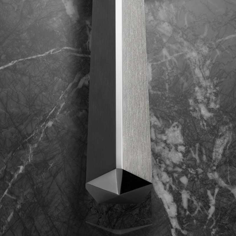 煌めきを感じるデザインのハンドルはシャープさを演出しながらも、握りやすく計算した変形五角形。