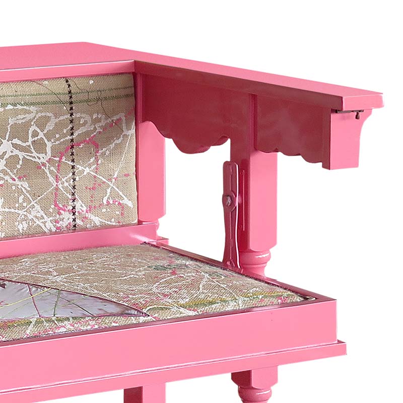 天板裏のの2つの止め具をはずし天板の一部を回転させることで、裏面のファブリックが座面となり、テーブルからチェアへと変化させることができます。