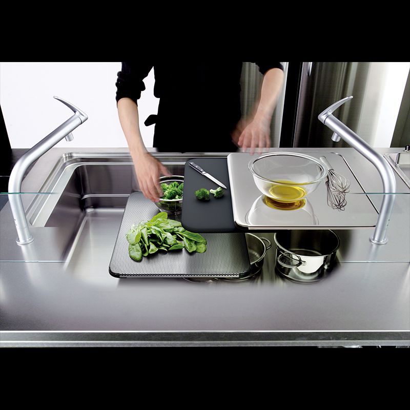 ●付属品:調理台プレート、マルチプレート、まな板、ステンレス配管ボックスセット、排水栓一式