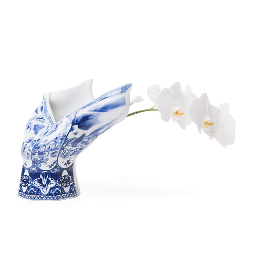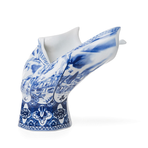 ブローアウエイべースは、オランダの伝統的陶器が一瞬で吹き飛ばされて変形するさまをカタチにし、伝統工芸にあらたな風を吹き込む作品。クラッシックアートとモダンデザインが融合したハンドメイド作品です。