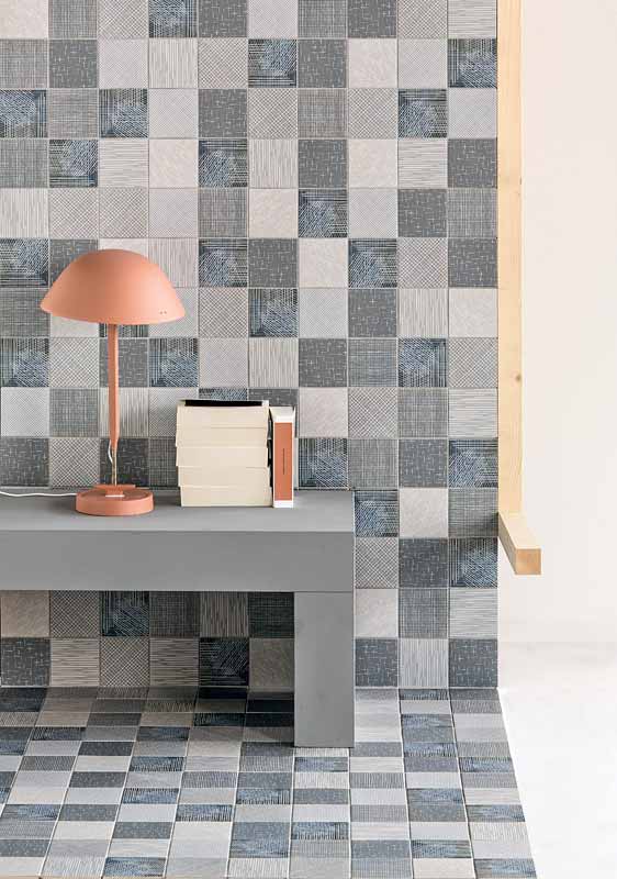 トラッティは10x10cmのタイルコレクションです。ホワイト、ベージュ、グレーのベースカラー3色と、8種類のパターンカラー、さらに3種のミックスカラーという多彩なバリエーションを持ち、壁、床、室内外問わずご使用頂けます。