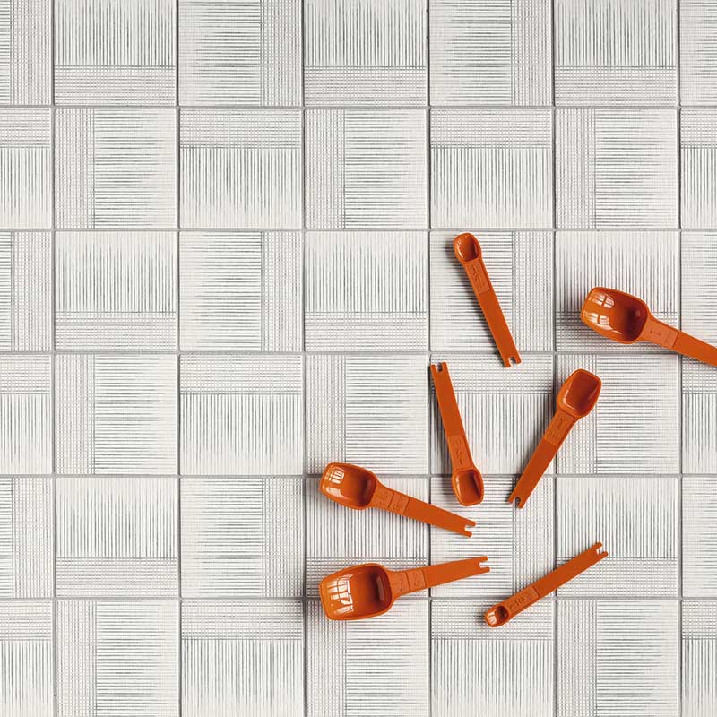 トラッティは10x10cmのタイルコレクションです。ホワイト、ベージュ、グレーのベースカラー3色と、8種類のパターンカラー、さらに3種のミックスカラーという多彩なバリエーションを持ち、壁、床、室内外問わずご使用頂けます。