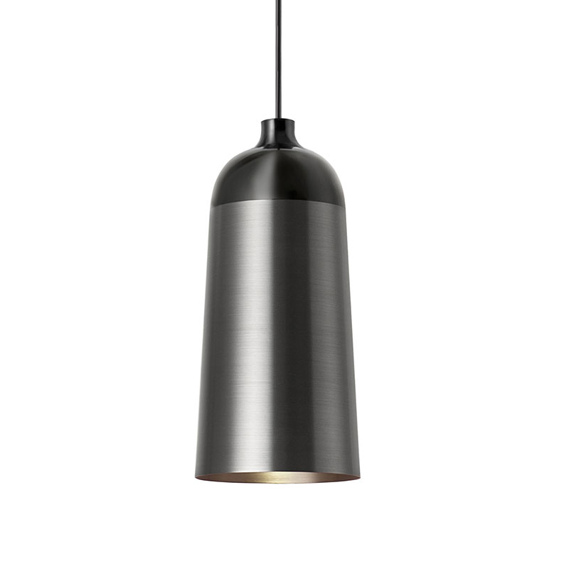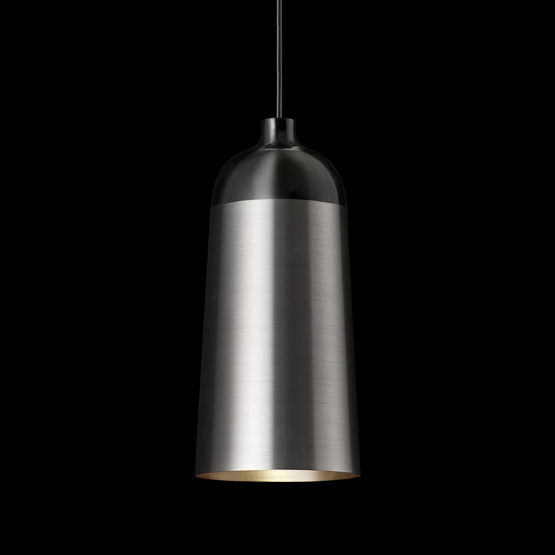 混じり合わない金属とセラミックがひとつなぎになったような照明です。チャコールとブラックのツートンカラー、そして丸みを帯びた優しいシェードのラインが、この照明に暖かい印象をもたらしました。バーやレストラン、そして日本の住宅にもフィットします。