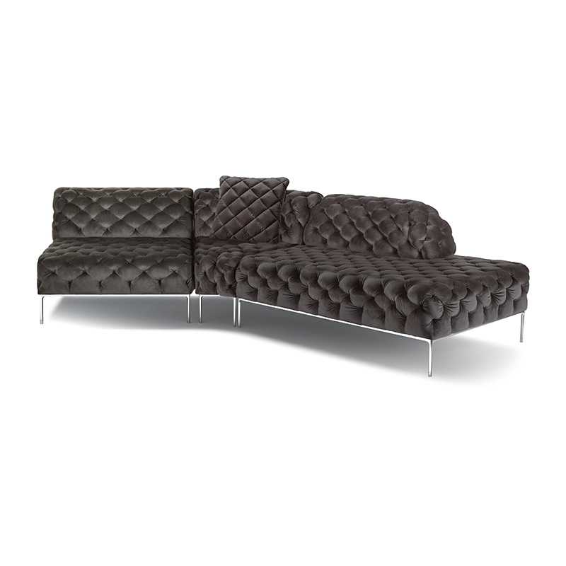 リズミカルにステッチ(タフティング加工)を施したクラシックなチェスターフィールド調のソファを、モダンにアレンジしたデザインです。