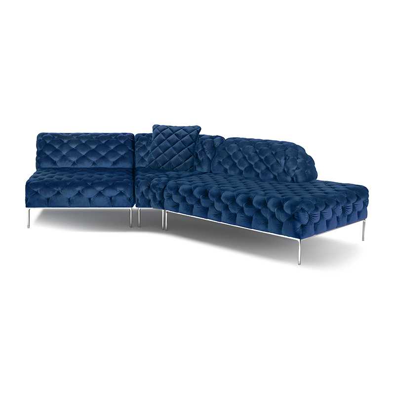 リズミカルにステッチ(タフティング加工)を施したクラシックなチェスターフィールド調のソファを、モダンにアレンジしたデザインです。