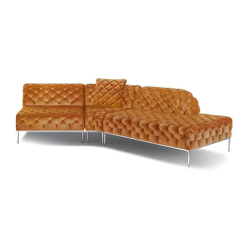 リズミカルにステッチ(タフティング加工)を施したクラシックなチェスターフィールド調のソファを、モダンにアレンジしたデザインです。