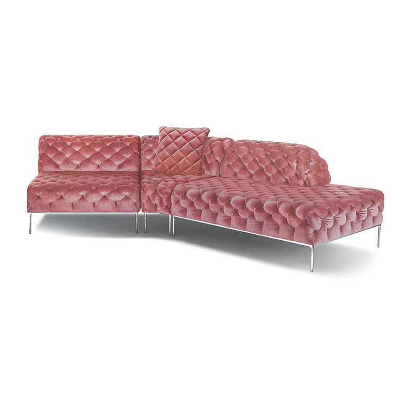 リズミカルにステッチ(タフティング加工)を施したクラシックなチェスターフィールド調のソファを、モダンにアレンジしたデザインです。