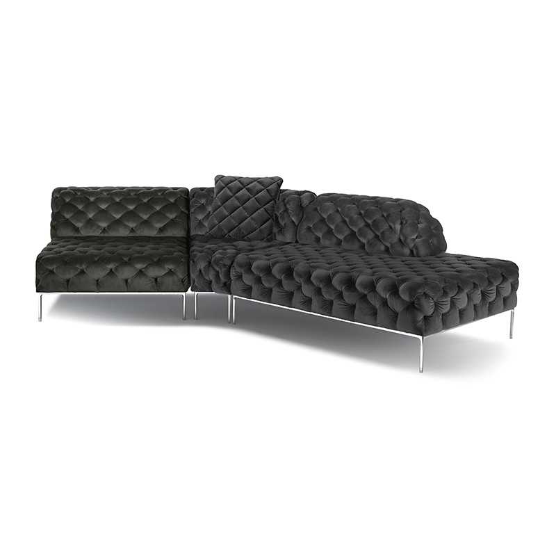 リズミカルにステッチ(タフティング加工)を施したクラシックなチェスターフィールド調のソファを、モダンにアレンジしたデザインです。