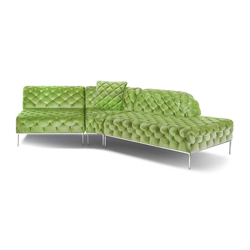 リズミカルにステッチ(タフティング加工)を施したクラシックなチェスターフィールド調のソファを、モダンにアレンジしたデザインです。
