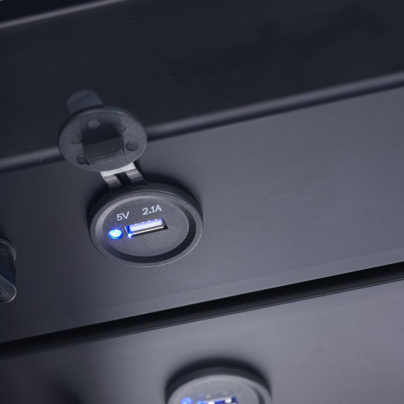 内部にはスイッチ付きのシャッター式2口コンセント、USB電源があります。ドライヤーやヘアアイロン、電動歯ブラシなど電源を必要とするアイテムもスムーズに使えます。USB電源はメイク動画を見ながらのメイクや美容家電の充電にも。
