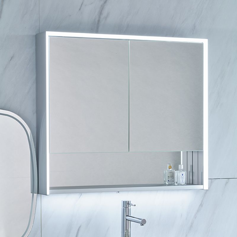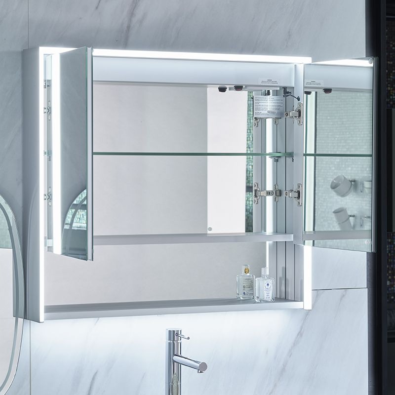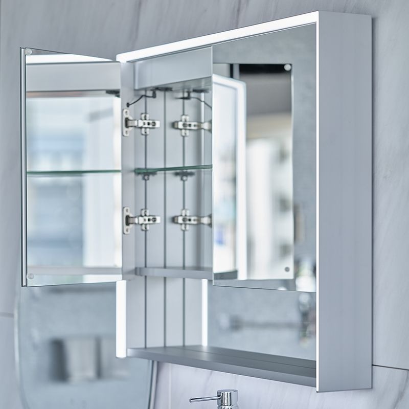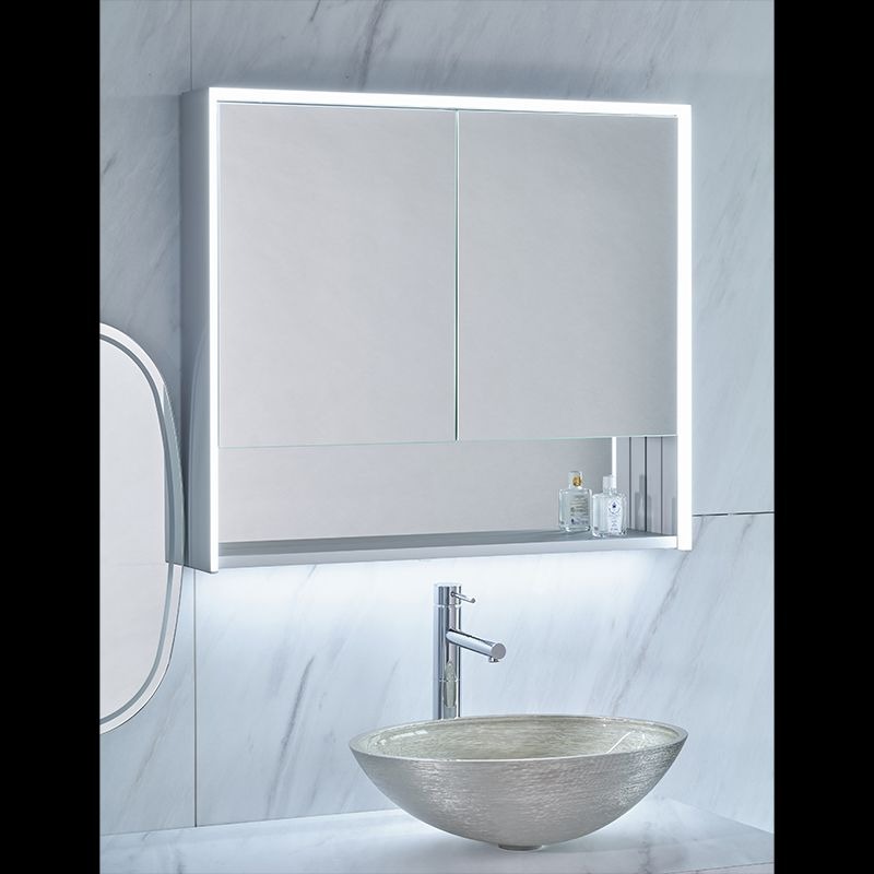 ミラーを開けば電源内蔵の大型収納