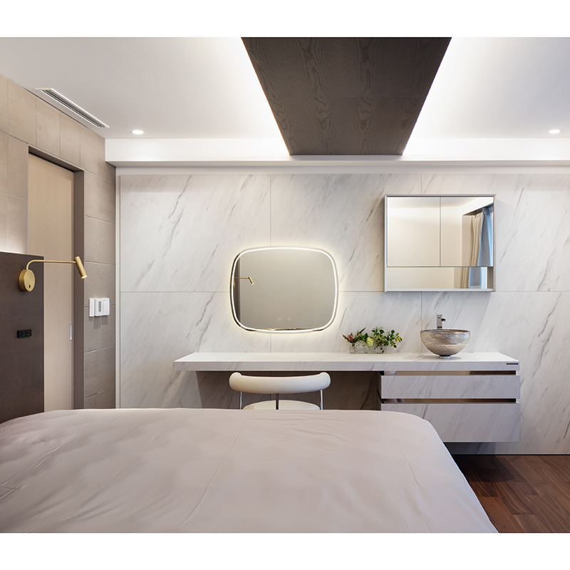 本体の周囲にはダイレクトLEDが内蔵され、ミラーを使う人とともに周囲も明るく照らします。影を作らずに姿を照らすハリウッドミラータイプです。