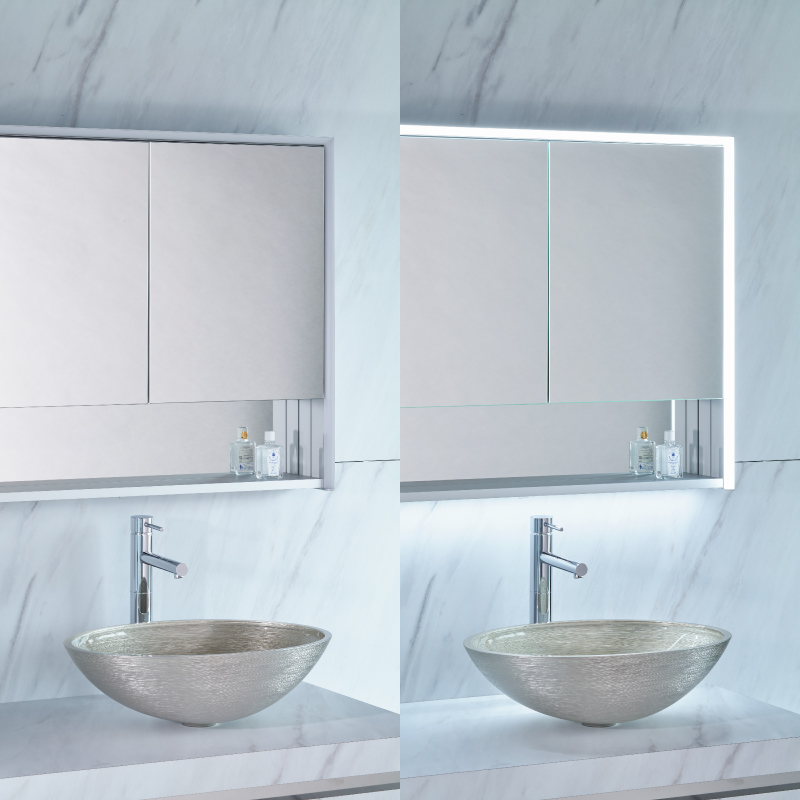 棚下にもLED照明があるので、ミラーの下側の洗面ボウルなどを使うときにも便利です。
