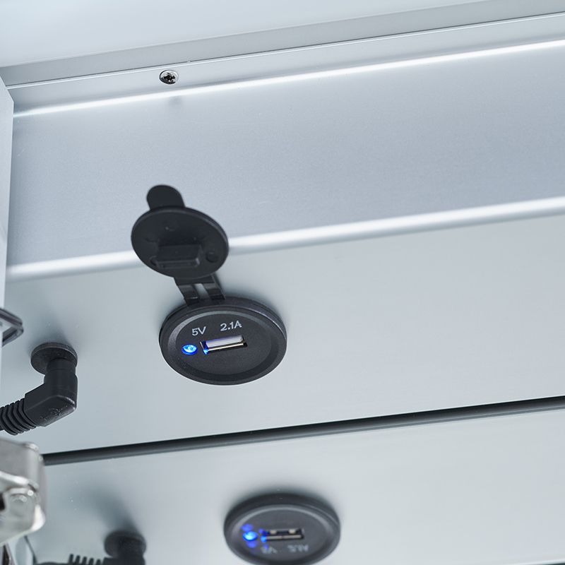 内部にはスイッチ付きのシャッター式2口コンセント、USB電源があります。ドライヤーやヘアアイロン、電動歯ブラシなど電源を必要とするアイテムもスムーズに使えます。USB電源はメイク動画を見ながらのメイクや美容家電の充電にも。