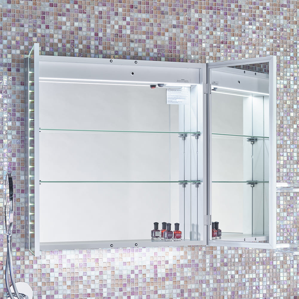 扉は照明連動の曇り止めミラーでクリアな視界を確保します。