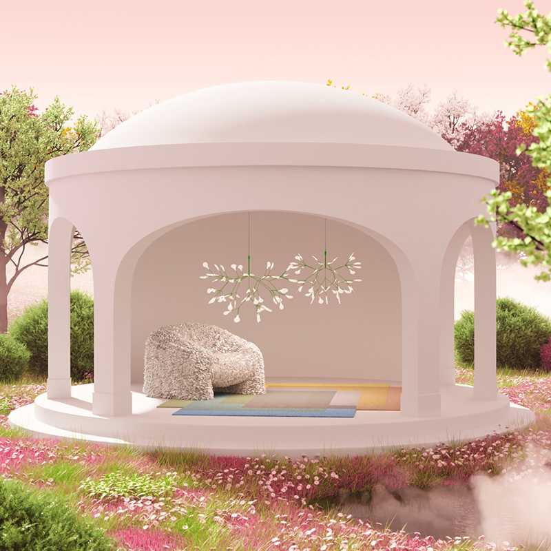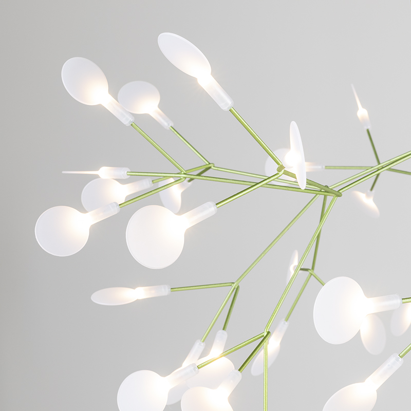 セリ科の多年草「ヘラクレウム」の繊細で可憐な花がデザインモチーフになっています。枝の先端に咲く小さな花弁を、LED光源と丸いディフューザーで再現されています。