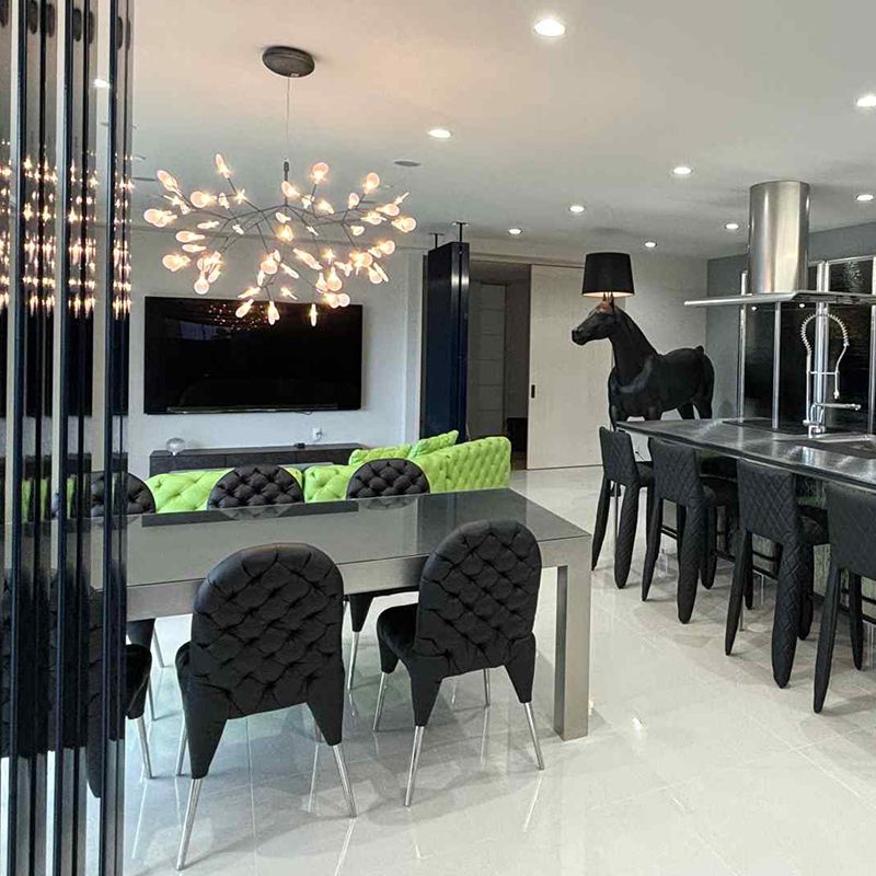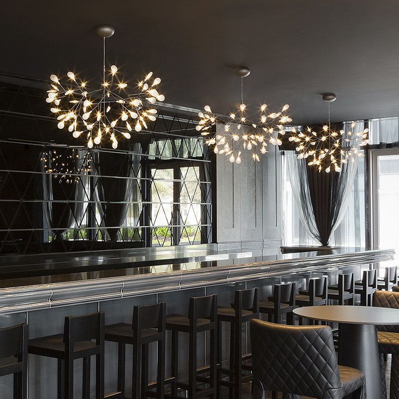 標準サイズまたはスモールサイズを、ダイニングテーブルから60?80cm程度の高さに吊るすのが理想的です。枝の抜け感により圧迫感がなく、食事中の会話も自然に弾みます。北欧スタイルやモダンインテリアとの相性が抜群です。