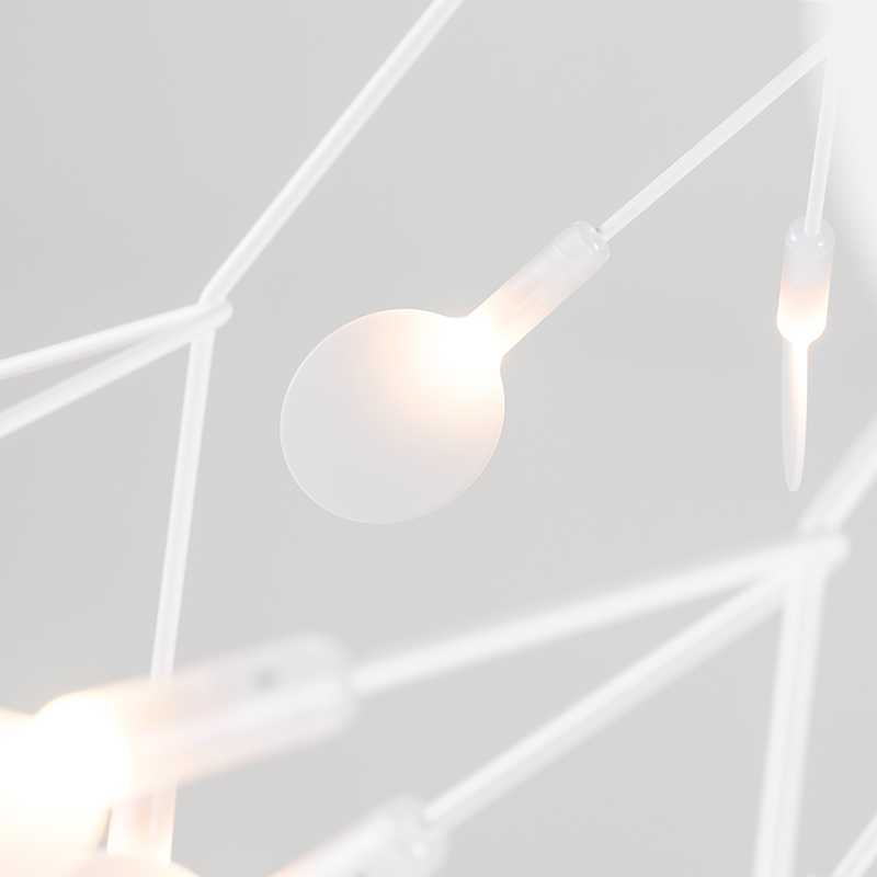 ヘラクレウム3の最大の魅力は、自然界にある植物の繊細さを照明として再現した点にあります。デザインモチーフとなったのは、セリ科の多年草「ヘラクレウム」の花。枝の先端に咲く小さな花弁を、LED光源と丸いディフューザーで表現しています。
