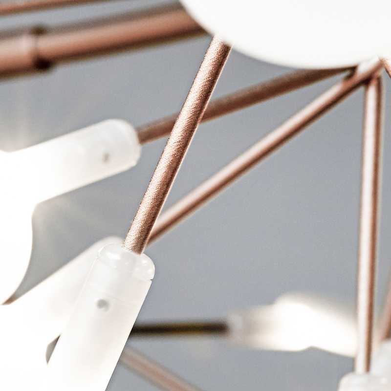 セリ科の多年草「ヘラクレウム」の繊細で可憐な花がデザインモチーフになっています。枝の先端に咲く小さな花弁を、LED光源と丸いディフューザーで再現されています。