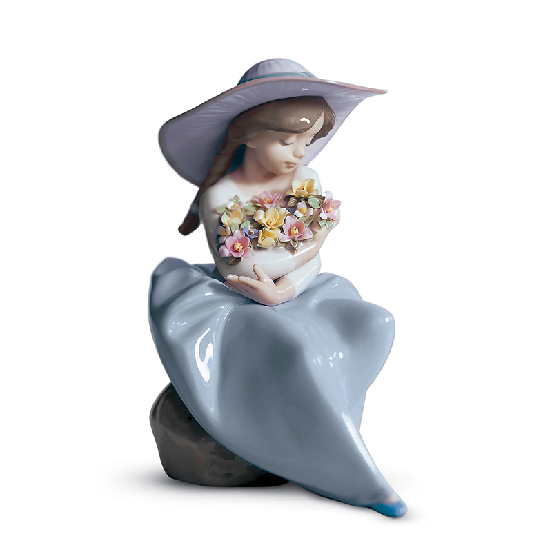 香りに誘われ、懐かしい想い出が心によみがえってきました。 自然なポーズ、穏やかな表情、本物と見紛うばかりの美しい花々など、リヤドロらしさたっぷりの作品です。