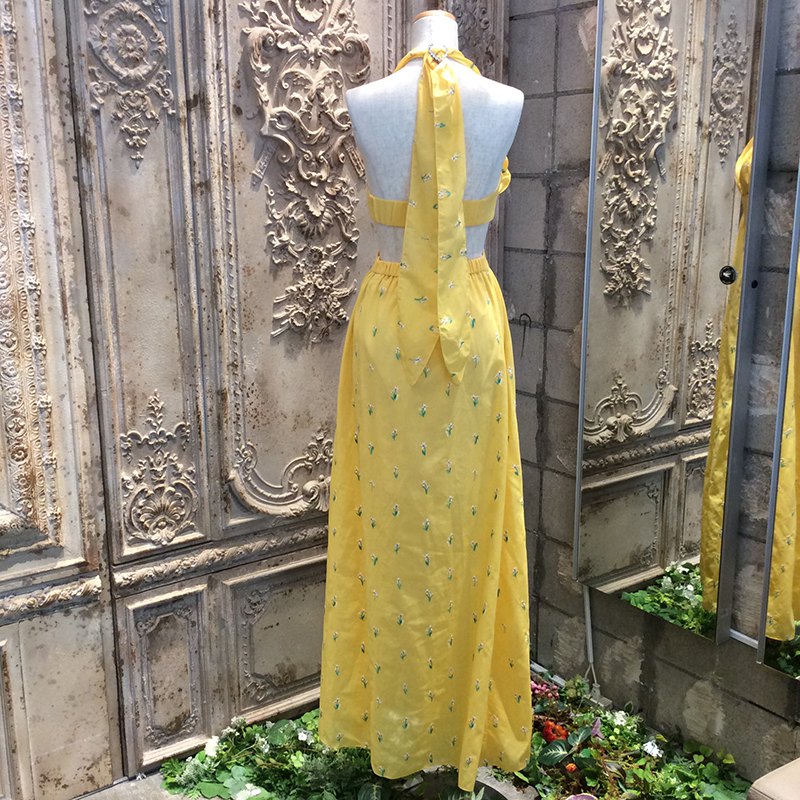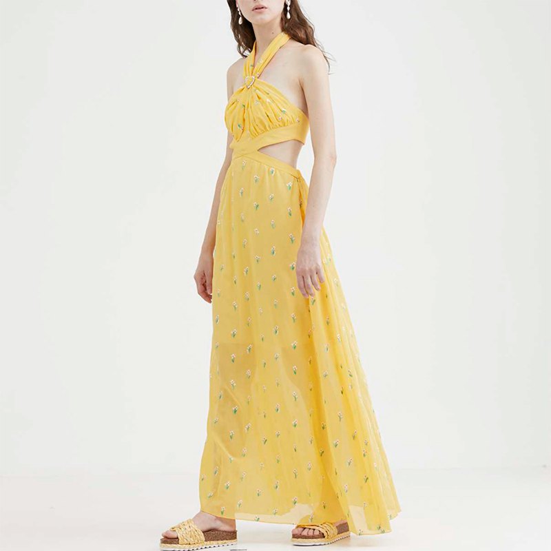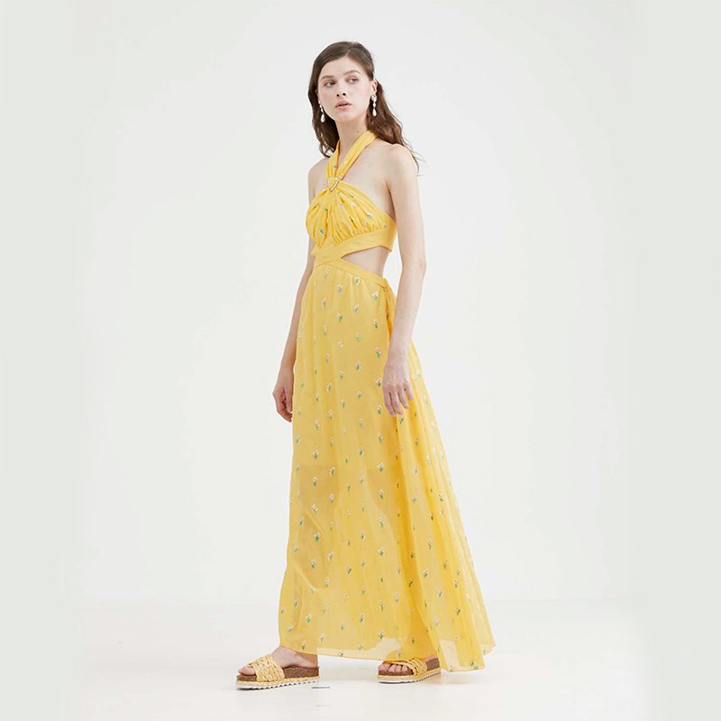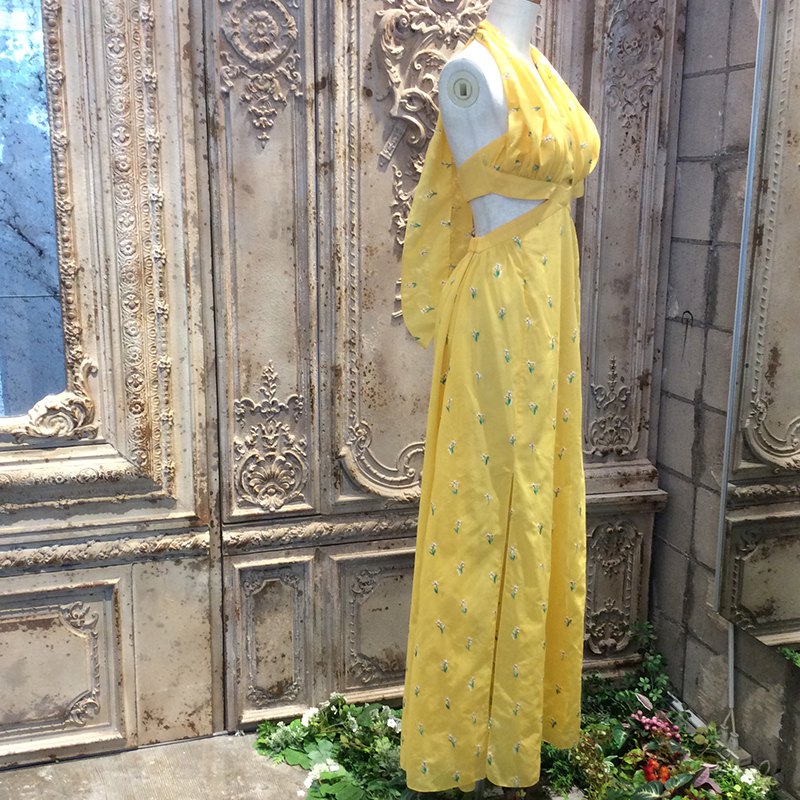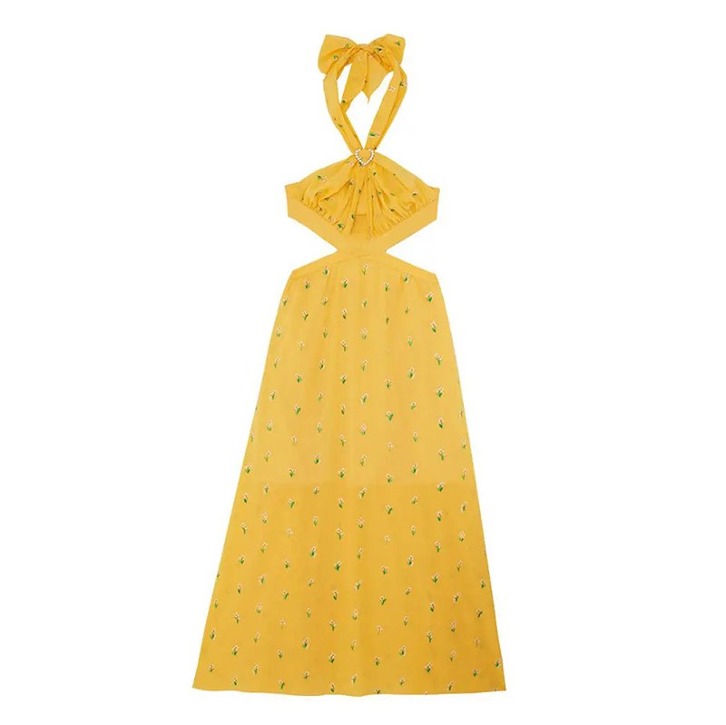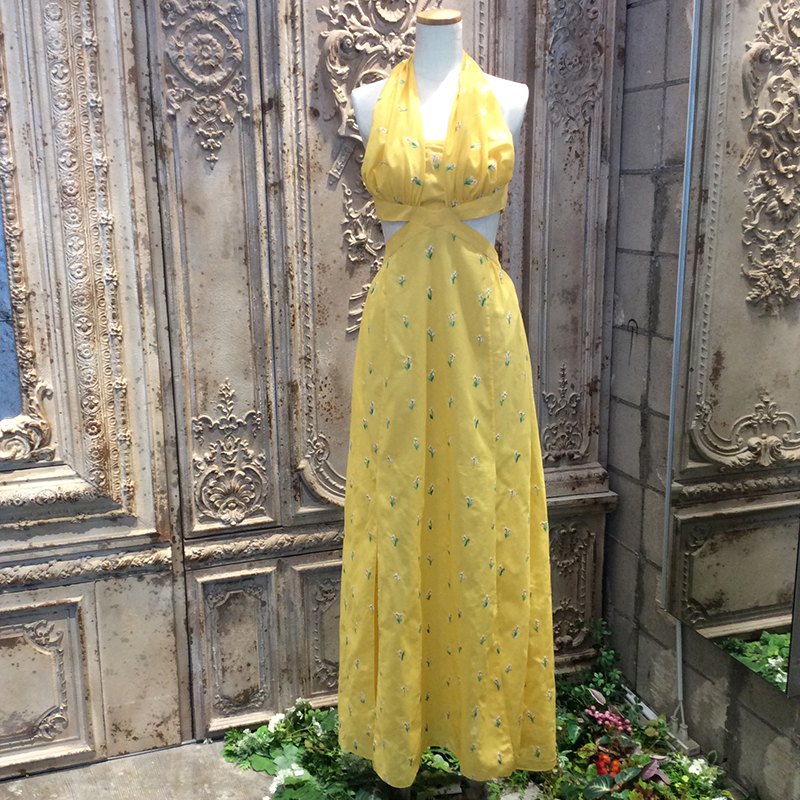ヘルシーでキュートなホルターネックのドレスには、キラキラのモチーフでホルターの長さ調節が可能です。