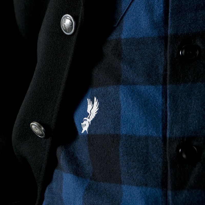 右脇下部にワンポイント刺しゅう入り。ボタンはピアノブラックと呼ばれる漆黒の美しいアクリル素材を採用し、アクセントとして大人の艶感をプラスしています。