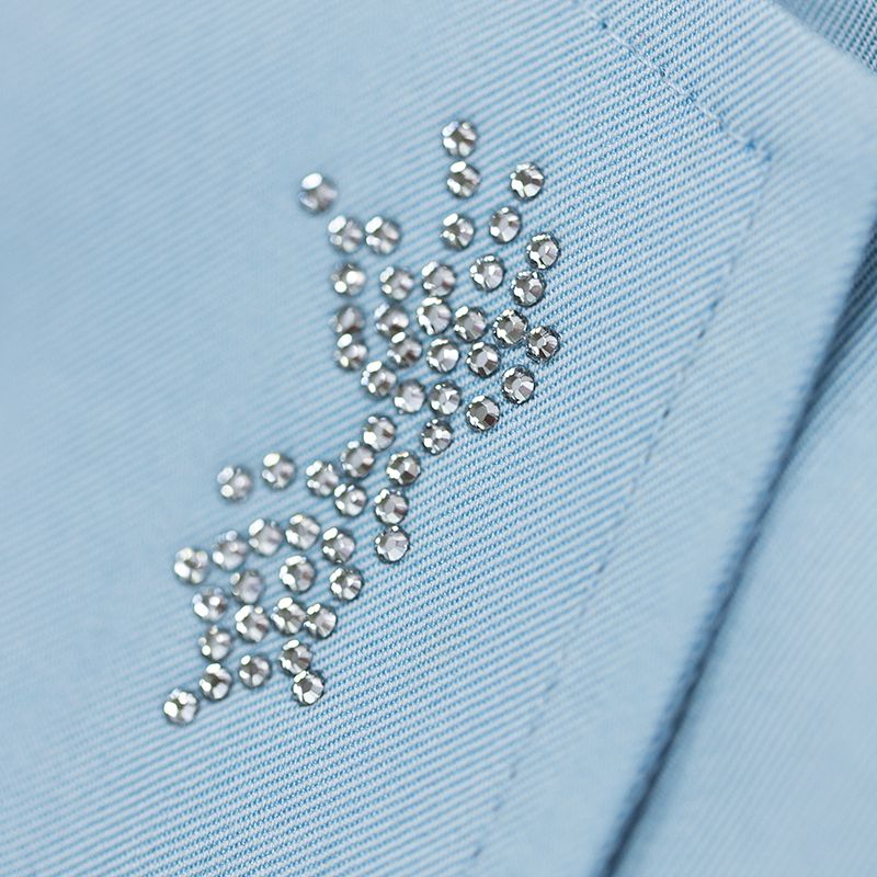 背抜きの観音裏地仕立て。大見返しお台場仕様。下衿にスワロフスキーのロゴ入り。