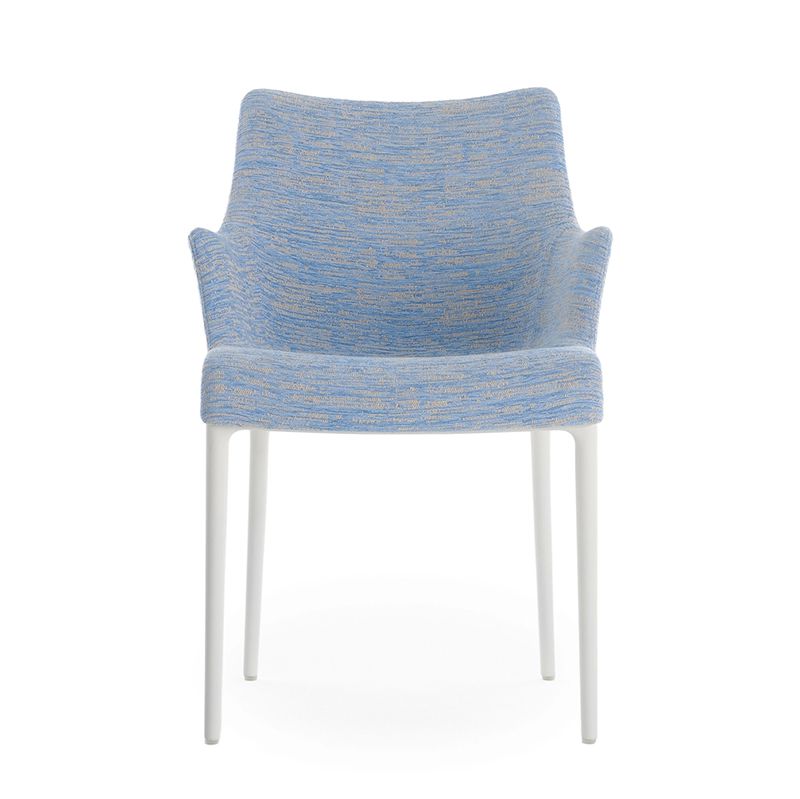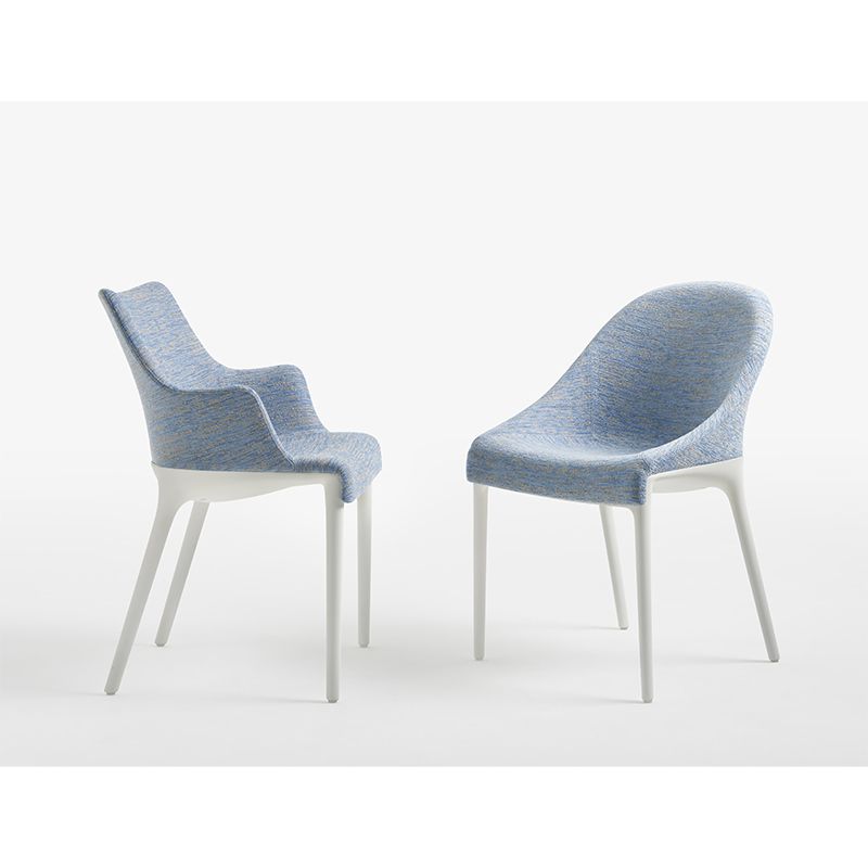ファブリックチェア「エレガンツァ」にはニアとエラの2つのバージョンがあります。どちらもしなやかでスッキリとしたフォルムです。