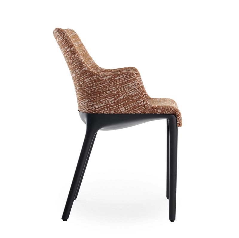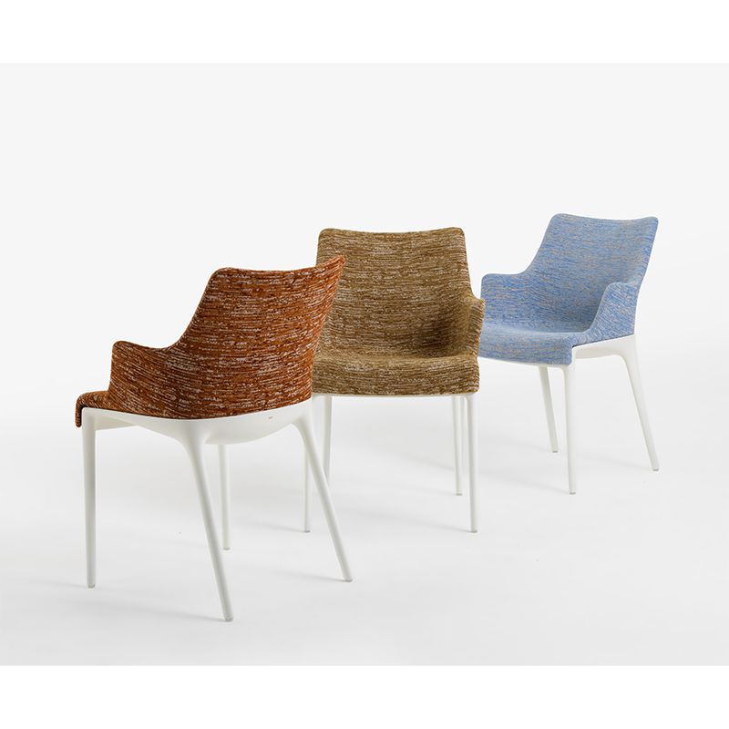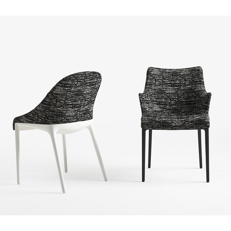 ファブリックチェア「エレガンツァ」にはニアとエラの2つのバージョンがあります。どちらもしなやかでスッキリとしたフォルムです。